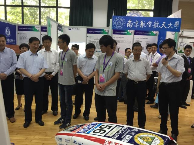 为推动大学生创新创业工作的深入开展,全面培养学生的创新精神和实践能力,充分展示大学生科技创新的水平和成果,营造“大众创业、万众创新”的良好氛围,团省委、省学联于66日至7日在淮阴工学院举办了大学生科技创新成果展,来自全省34所高校的百余件作品积极参展,经主办方筛选,确定37件作品参加成果展。在为期三天的展示中,江苏省副省长曹卫星、团省委书记万闻华等亲临现场,耐心倾听了东南大学力魔车队三位同学的讲解。