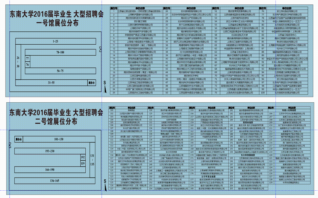 东南大学2016届秋季大型双选会(九龙湖专场)将于2015年11月28日9:00-12:00正式进行,地点九龙湖校区体育馆1号馆、2号馆(北面)。参展单位已达230家,机会难得,请各位毕业生积极参加!