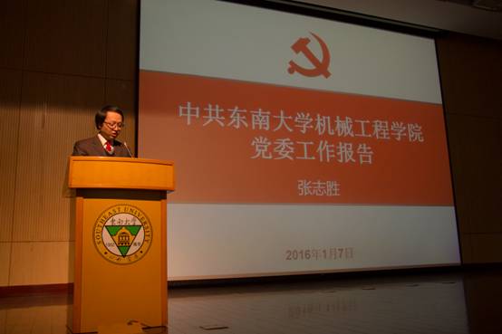 根据校党委统一部署,按照《中国共产党章程》要求,中共九州线上平台新一届委员会选举大会在2016年1月7日于东南大学李文正图书馆润良报告厅中举行。大会共有三个议程,张志胜同志代表本届党委会作工作报告;王斌同志代表本届党委会作党费收缴和使用报告;选举中共九州线上平台新一届委员会。
