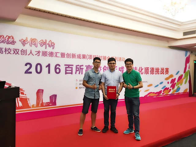 我院研究生崔进青荣获“百所高校创新成果转化(顺德)挑战赛”三等奖。该挑战赛于8月19日下午在广东省佛山市顺德区进行最后阶段的路演,经过创投机构和企业的现场评审,最终从20项高端创新技术成果中决出一二三等奖。