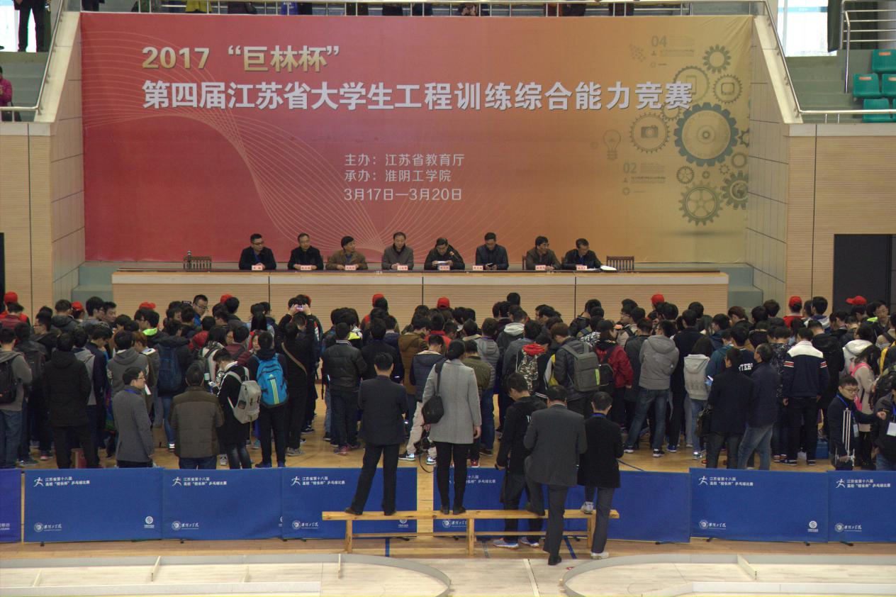 317日,在雄壮的国歌声中,2017“巨林杯”第四届江苏省大学生工程训练综合能力竞赛顺利开幕,东南大学工培中心主任张远明教授致开幕词,淮阴工学院陆为群教授致欢迎词。