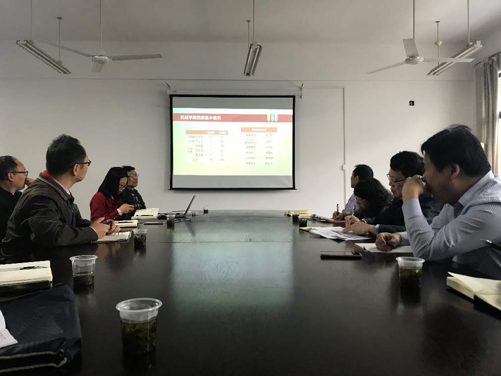 2018年4月12日上午,校党委书记左惟莅临机械工程学院调研并指导工作,校党办主任冯建明等陪同调研。调研会议由学院党委书记张志胜主持,学院党政班子成员及各系(中心)领导、学科建设负责人、教师和学生代表参加了此次调研会议。