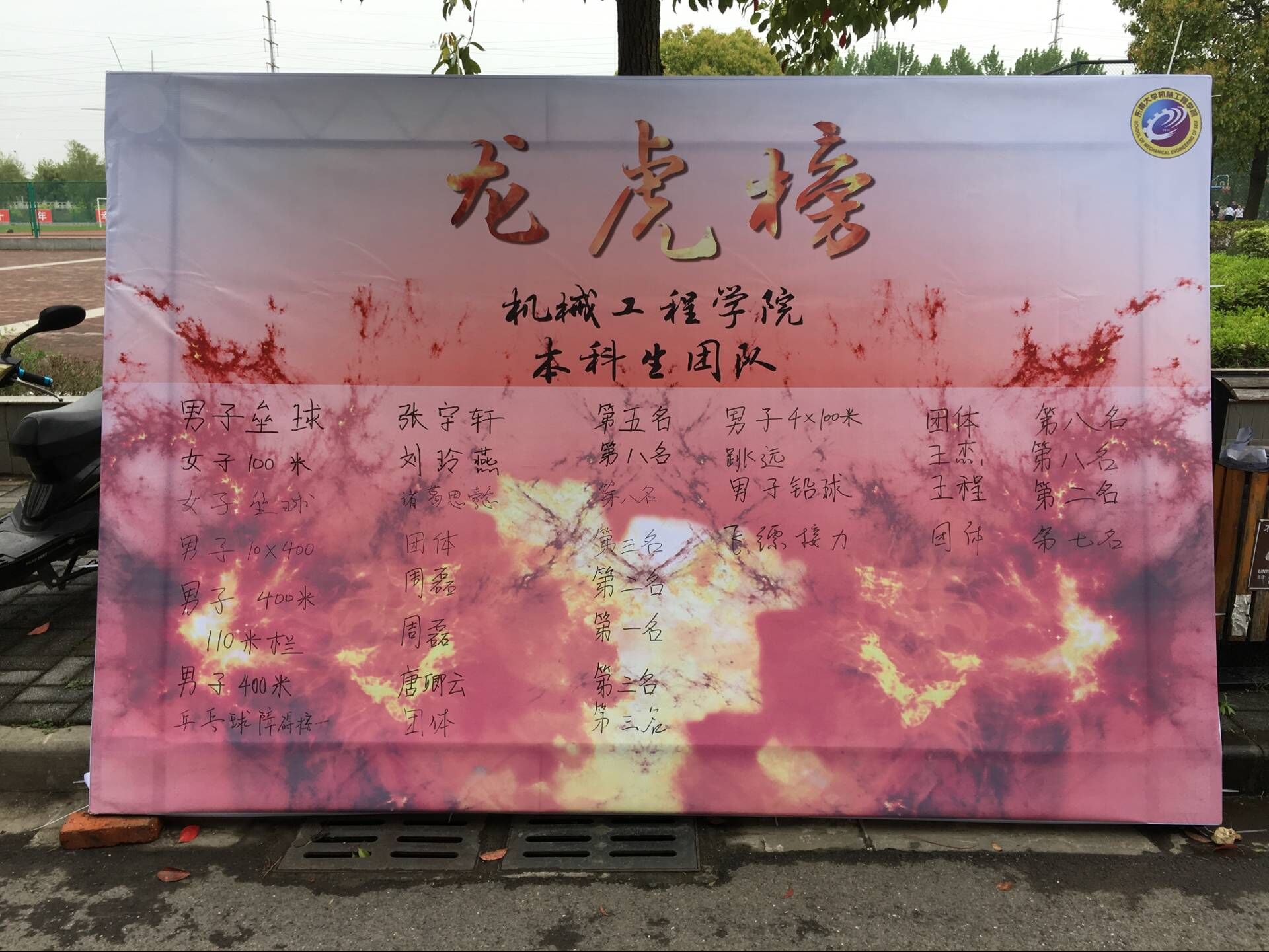2018年4月13日,东南大学第60届学生运动会暨第24届教职工运动会正式开幕。在一场盛大的开幕式后,运动会正式开始。机炼成器,械砺为精,在校运动会第一天的赛场上,机械健儿斩获傲人战绩。本科男子110m栏周磊夺得第一名,男子400m周磊和唐卿云分别揽下第二、三名,男子10*400m接力获团体第三名,女子100m刘玲燕获第八名,男子垒球张宇轩获第五名,女子垒球诸葛思懿获第八名,研究生铅球傅琪迪获第一名,张璐获第五名。