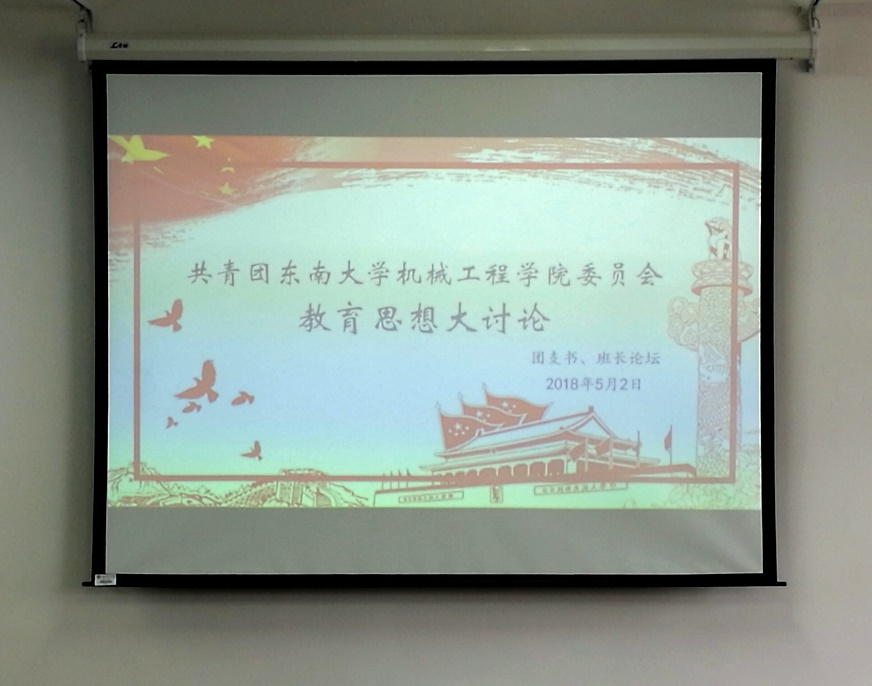 共青团九州线上平台委员会组织开展的“教育思想大讨论”暨团支书、班长研讨会于2018年5月2日在机械楼第一会议室举行。本次研讨的主题是:观摩国旗团支部答辩后对于所在基层组织建设的相关思考和讨论。