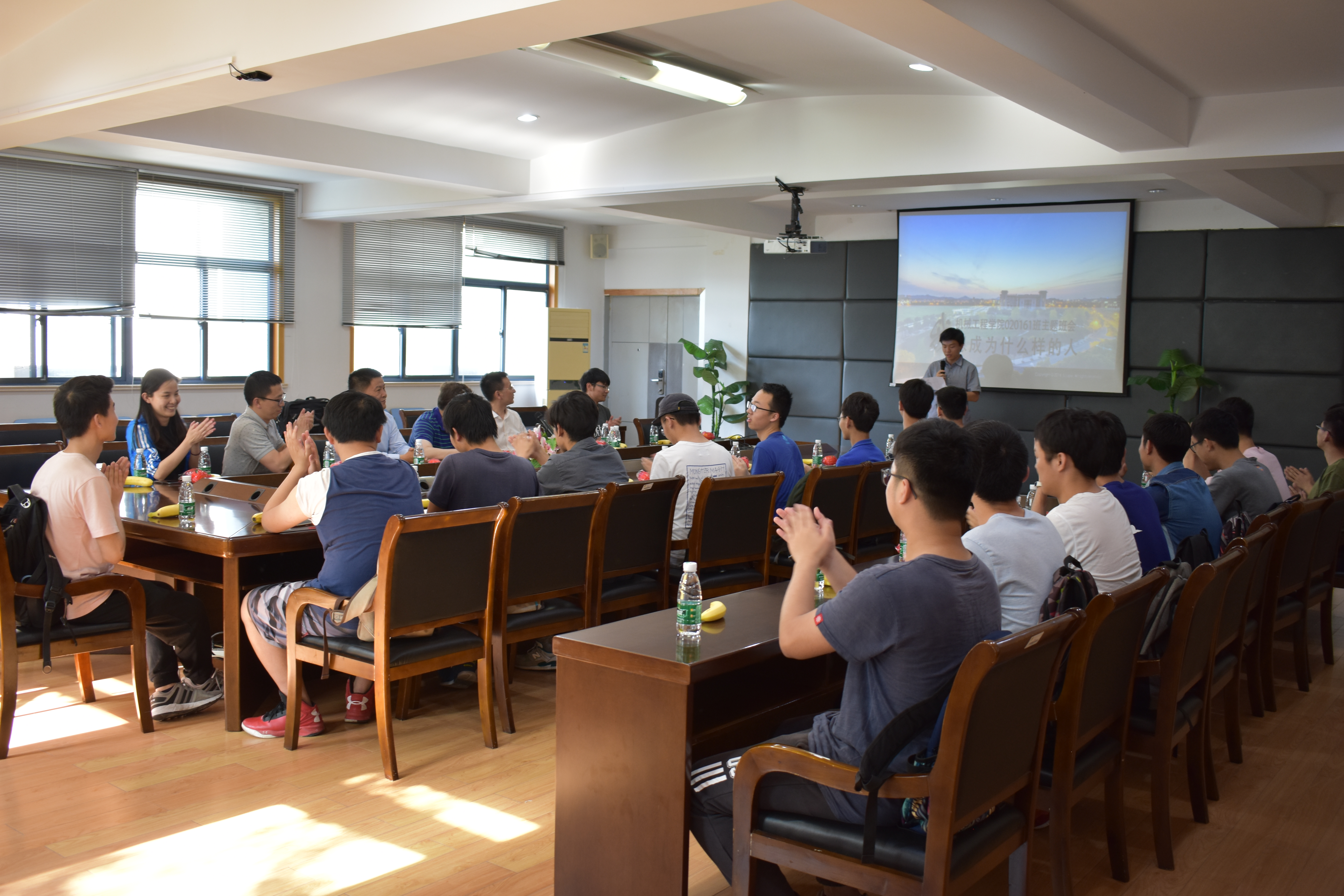 首先,由班长陈泽众向校、院领导汇报班级基本情况。