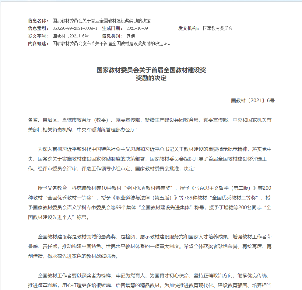 教材建设奖简介