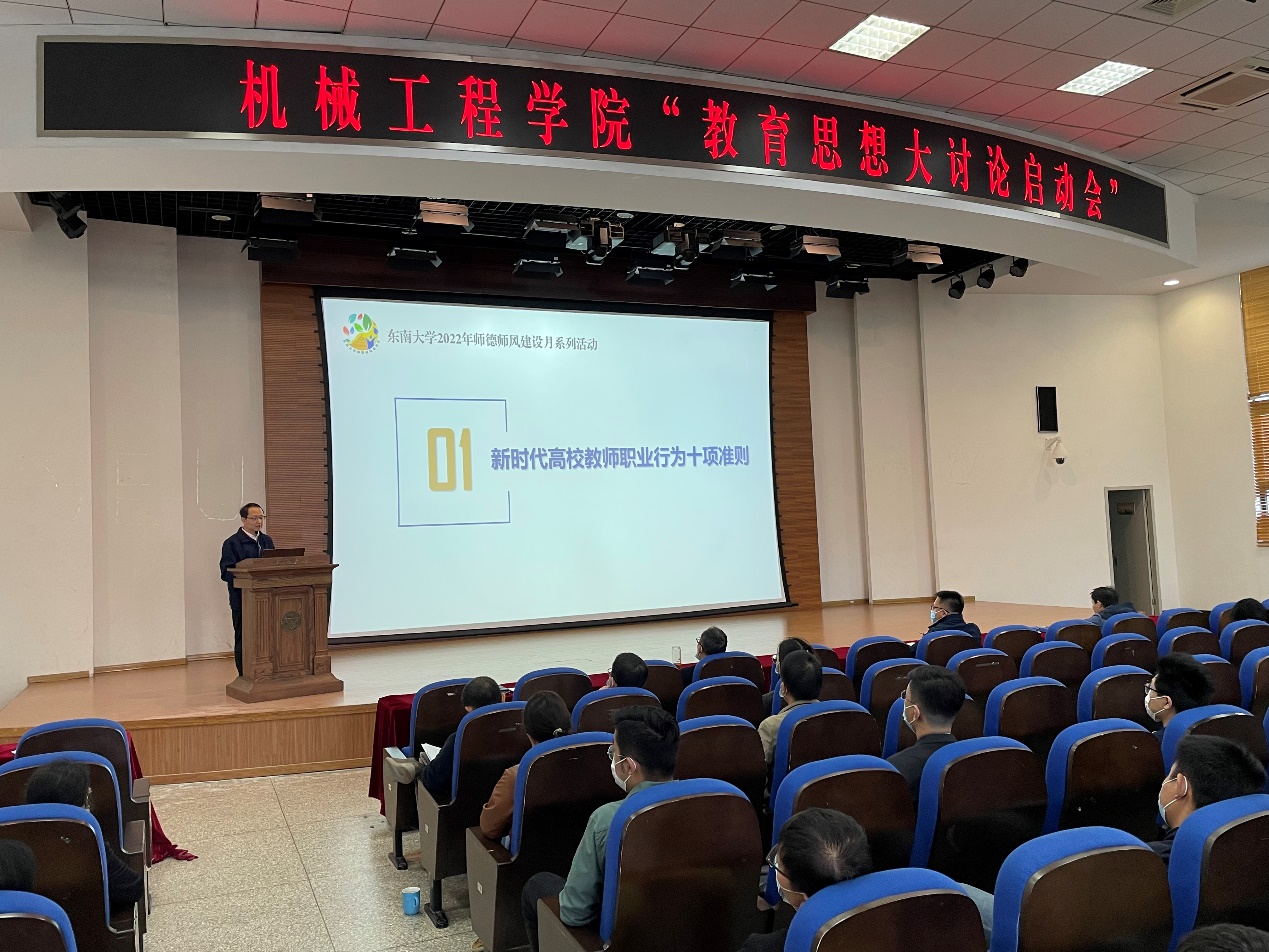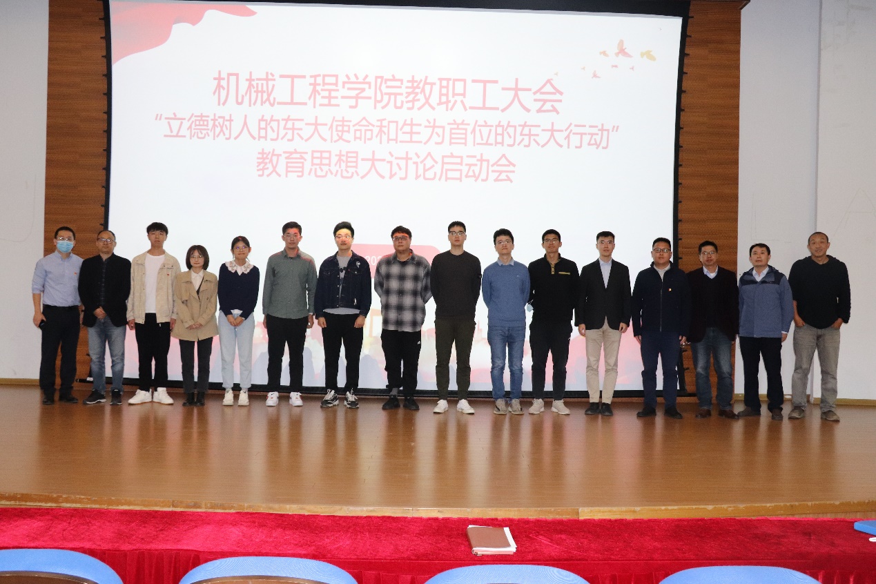 机械工程学院于2022年10月17日上午在九龙湖校区纪忠楼报告厅召开全院教职工大会,学院党委书记张志胜为全体教职工做了“立德树人的东大使命和生为首位的东大行动”教育思想大讨论启动报告,并做了师德师风专题教育。党委副书记王斌做了教育思想大讨论工作部署。倪中华院长做了“课比天大 生为首位”的总结报告。最后,学院新入职的教职工进行了自我介绍。