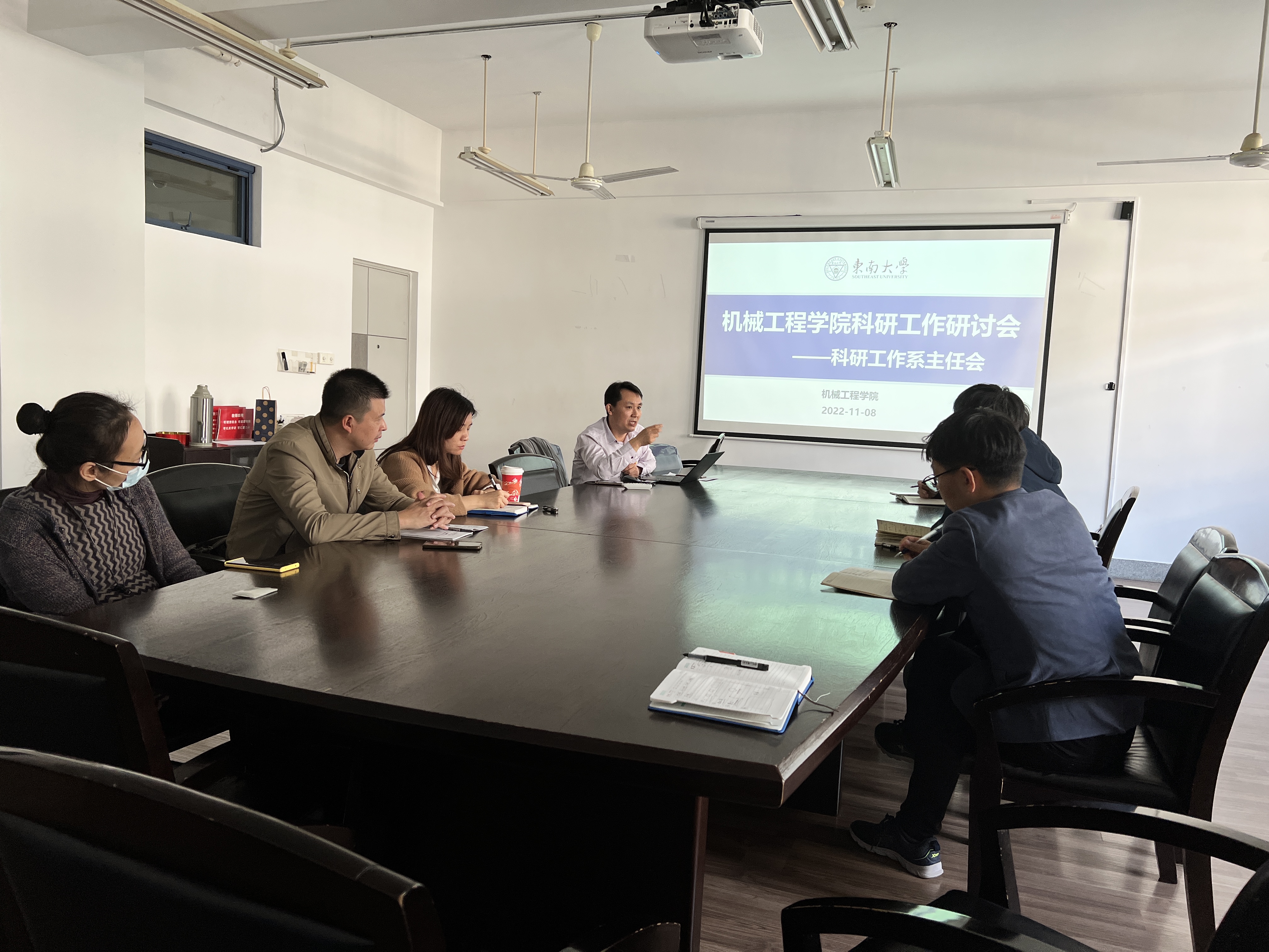 机械工程学院于2022年11月8日下午在机械楼第一会议室召开了科研工作讨论会,学院科研副院长刘晓军教授主持会议,机制系主任孙东科、机设系主任阚亚鲸、机电系主任窦建平、车辆系主任庄伟超、工业工程系主任罗晨、工业设计系主任周小舟、科研秘书胡涛参加会议。