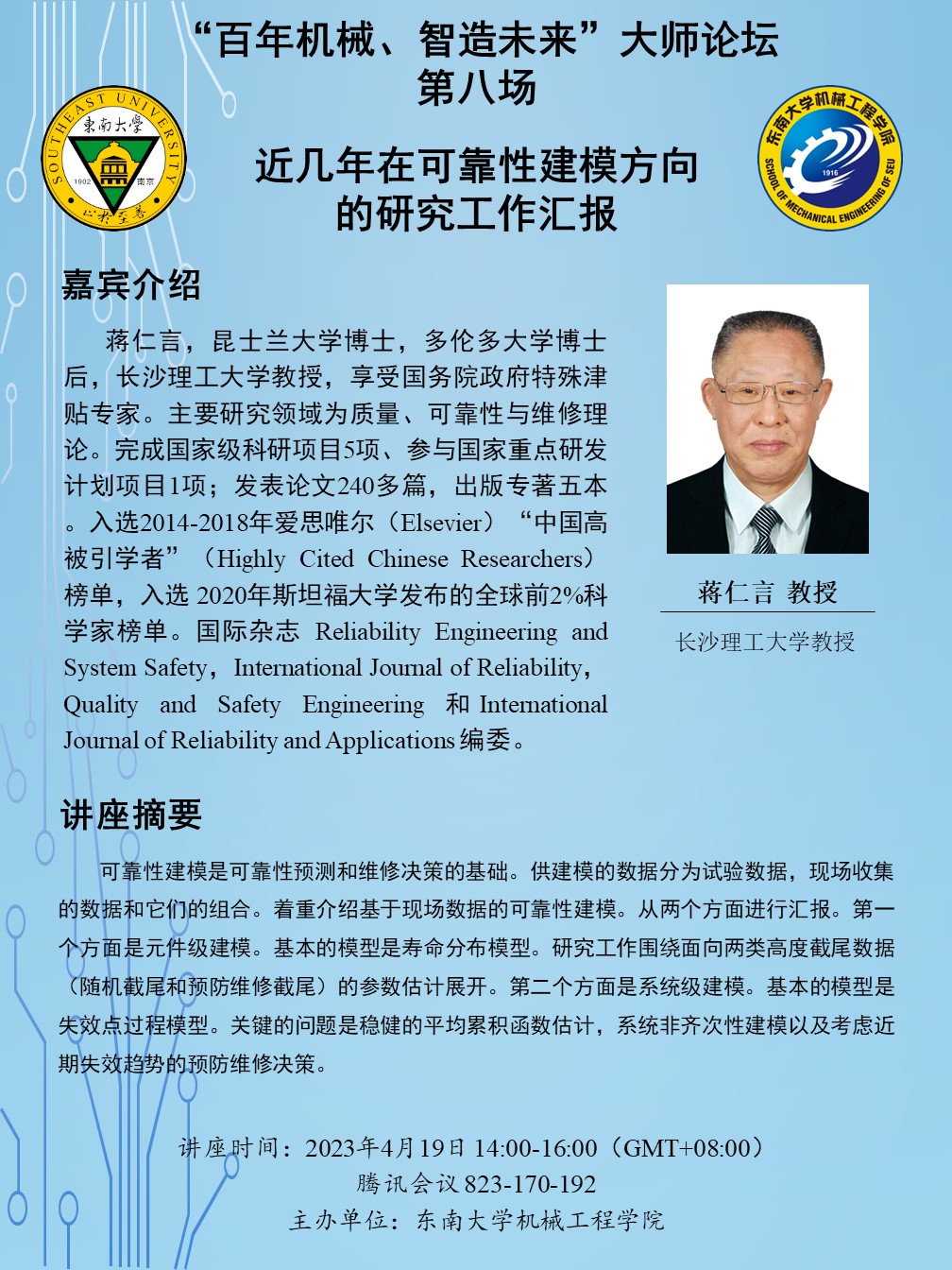 “百年机械、智造未来”大师论坛第八场:蒋仁言教授——近几年在可靠性建模方向的研究工作汇报