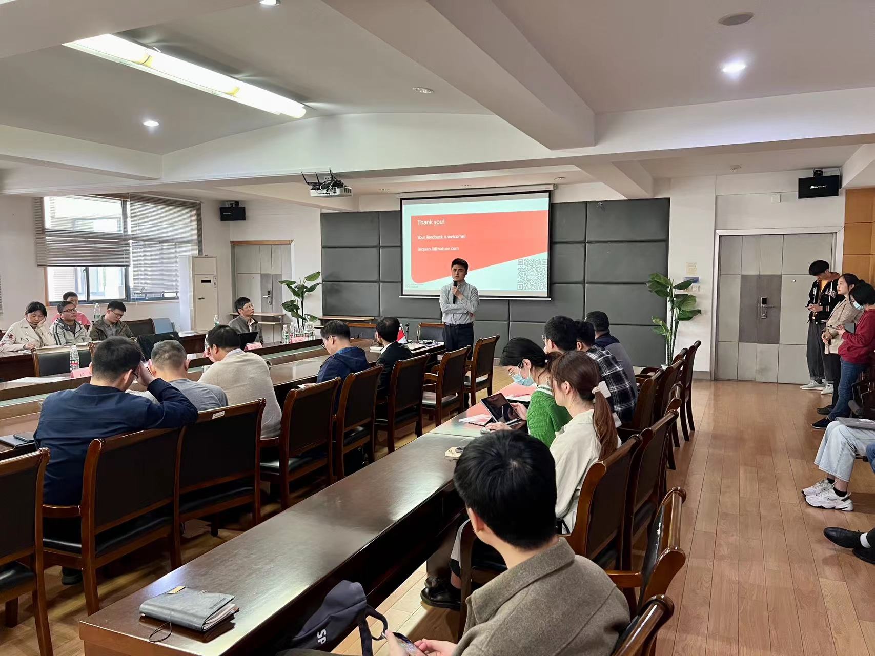 4月12日,培训讲座环节在机械工程学院南高厅举行,由王乾乾副教授主持。施普林格·自然集团编辑团队的李来全博士以《从编辑视角谈如何在Nature系列杂志发表文章》为题,向师生们介绍了从编辑角度如何选择文章以及编辑处理文章的流程、作者投稿注意事项等大家普遍关注的问题。讲座后众多师生踊跃提问,气氛热烈。