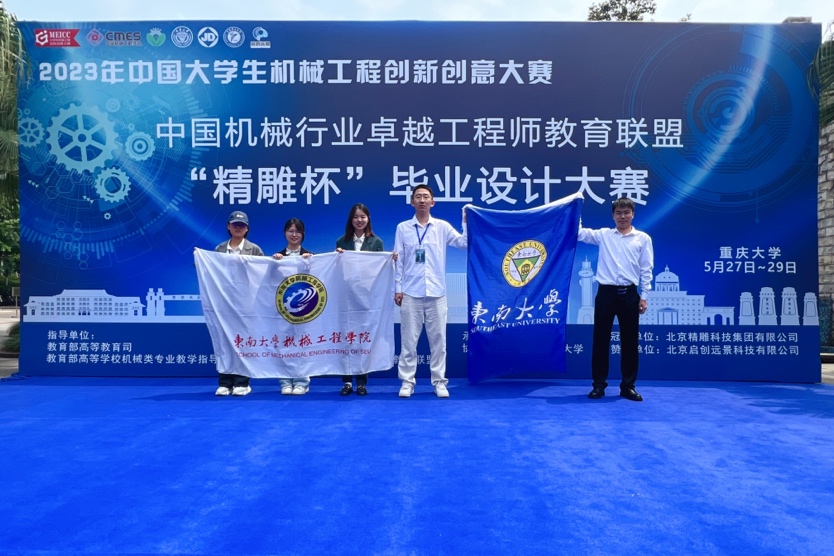 2023年5月29日,我院2019级本科生吴寒、吴意豪、吴鹏霄、丁雪容和周源煌同学成功入围“中国大学生机械工程毕业设计大赛”决赛,并在重庆大学举办的全国总决赛中斩获“全国佳作奖”的优秀成绩。这是东南大学首次入围该项赛事,在全国总决赛中展示了东大机械学子的风采!