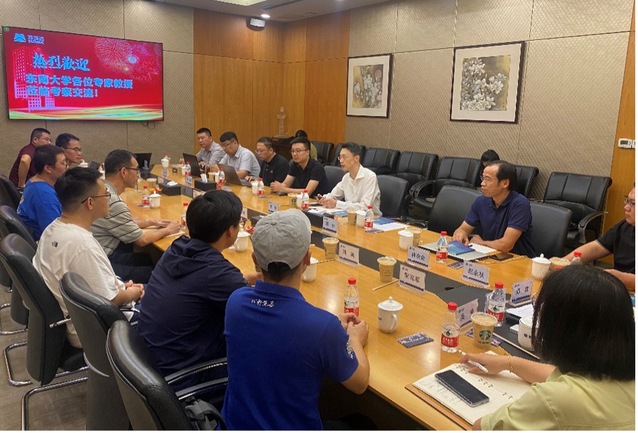 参观结束后,双方进行了深入细致的交流。首先,校科研院周山明介绍了东南大学整体科研情况以及与苏美达集团合作的情况。吕之阳教授简要汇报了机械工程学院的发展历史、目前主要研究领域以及突出的科研成果。随后,苏美达五金工具、能源、新大洋造船等子公司领导介绍了集团在机器人定位与导航、光伏与储能产品、高效焊接技术等方面的具体技术需求,并进行了技术对接。最后,苏美达股份人力资源部(党委组织部)总经理贾宇对各位老师的来访表示欢迎,希望今后双方在人才培养,科研项目等方面加强合作与交流,帮助我国经济主战场实现关键技术突破。