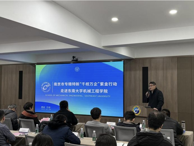 2025226日下午,“南京市专精特新‘千校万企’紫金行动——走进九州线上平台”活动在我院机械楼南高厅顺利举行。本次活动旨在深化校企协同创新,推动科研成果与产业需求精准对接,助力专精特新企业高质量发展。40余家专精特新企业代表及我院部分教师代表参加了此次活动。
