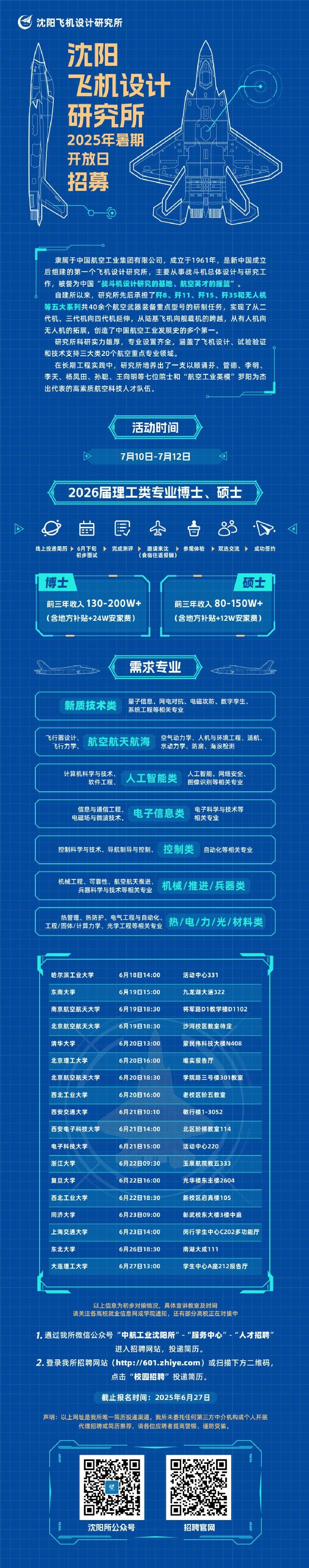 招聘 | 沈阳飞机设计研究所2025年暑期开放日招募正式启动