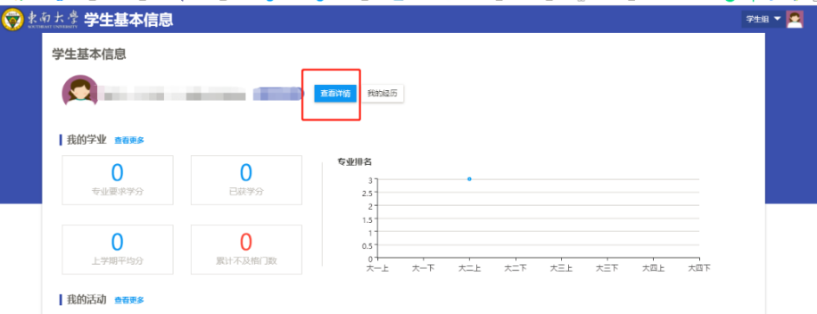 1.学生登陆网上办事大厅(ehall.seu.edu.cn)或者信息门户(i.seu.edu.cn)—搜索“基本信息”—选择“学生组”—点击“查看详细”。