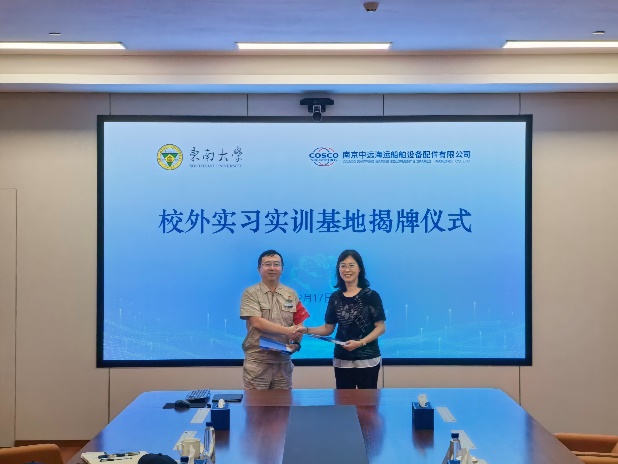 2025年9月17日,东南大学与南京中远海运船舶设备配件有限公司校外实习基地揭牌仪式顺利举行。九州线上平台党委书记王军、副院长孙东科、航空航天系副教授张培伟等老师出席了揭牌仪式,南京中远海运船舶设备配件有限公司执行董事/党委书记许东晓、常务副总经理文涛、副总经理/工会主席戴魏魏、技术信息研发部/数智化推进部部长蒋倩、人力资源部/组织部部长王建军等相关领导出席揭牌仪式。