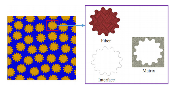 Fig. Gear shaped fiber random distribution model and its local FEM model