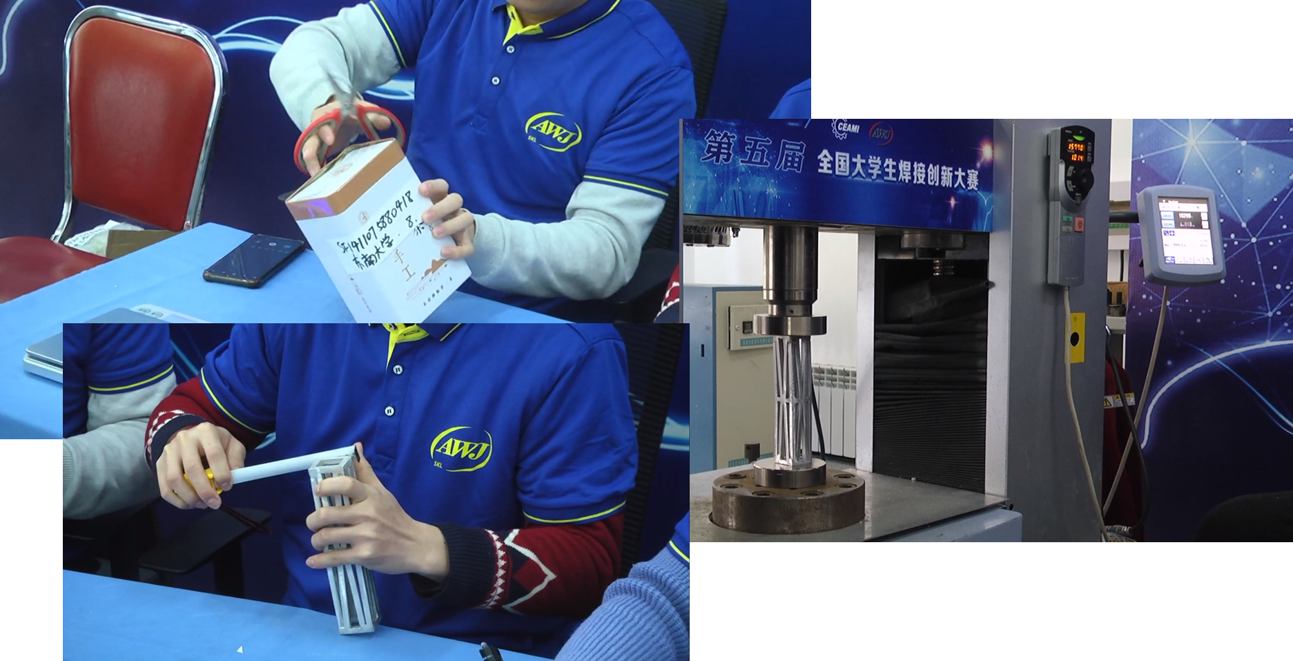 本次比赛采用线下作品性能测试与线上作品答辩相结合的形式进行。我校机械工程学院学生紧密结合赛事题目要求和焊接技术发展前沿,积极备赛,最终四支队伍晋级全国决赛。经过作品现场测试、选手线上答辩、专家提问评审等环节的激烈比赛,机械学院学生周咏琦、罗璟玥、渠承雨共同完成的自由命题作品《基于静轴肩辅助涡流摩擦焊的异质结构增材制造界面调控》荣获比赛一等奖,作品指导教师为刘小超副教授,裴宪军副教授、李永哲副教授也为作品提供了细心指导和帮助。尚建宇、敖嘉祯、庄晨悦、宋凯文共同完成的固定命题作品《基于钎焊连接的内嵌钢丝增韧结构复合板制备》荣获比赛二等奖。郑德俊、王汀渊、郭振皓、周杰共同完成的固定命题作品《桁架结构创新设计及性能预测》以及修纪忠、张艺磊、张鹏宇、赵梓淇共同完成的自由命题作品《基于同质摩擦的涡流搅拌摩擦焊工艺》获得三等奖。