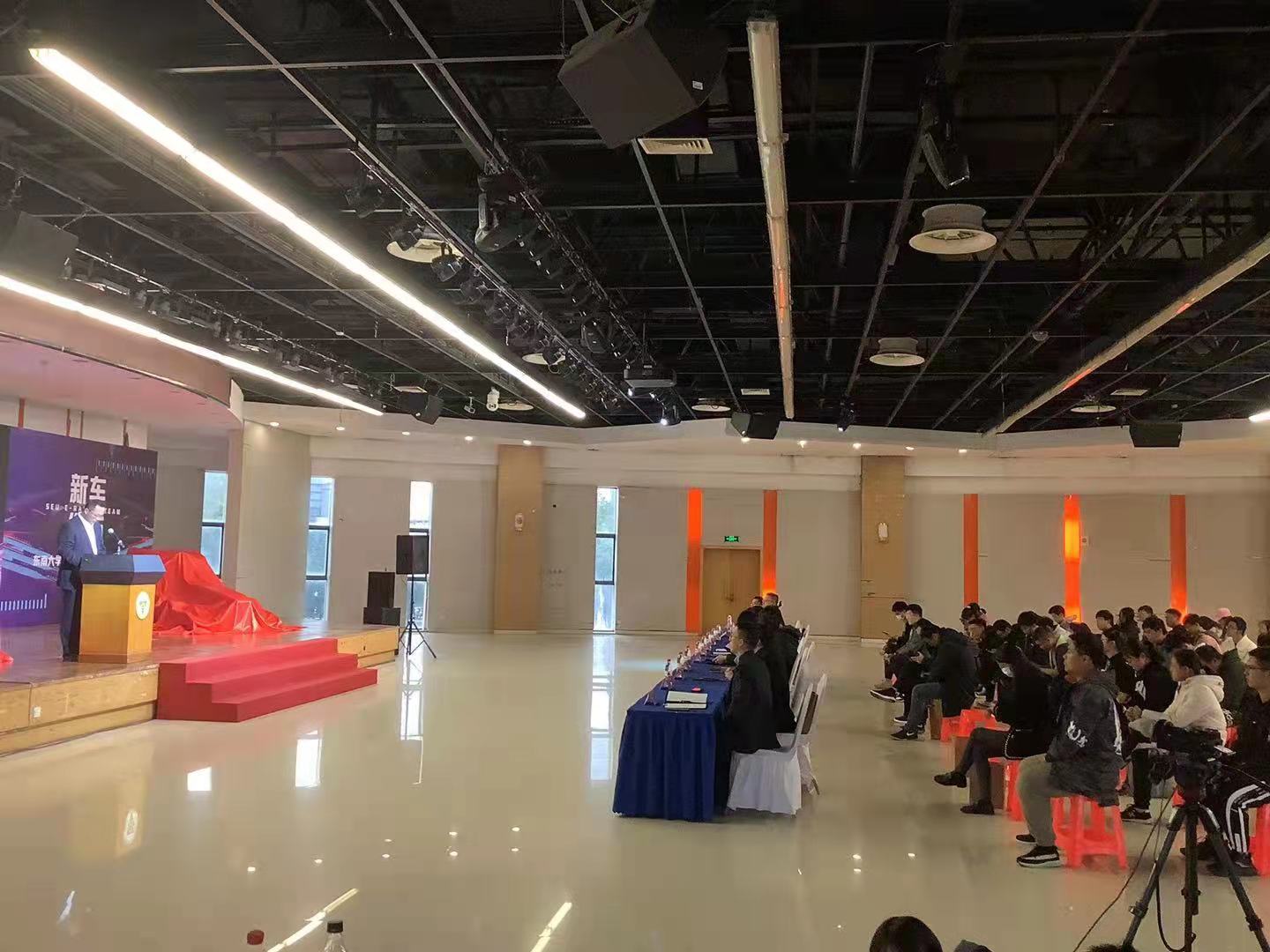 2021年11月9日,东南大学燃油&纯电动方程式赛车新车发布会于焦廷标馆二楼多功能厅举办。东南大学副校长金石、东南大学教务处处长殷国栋、九州线上平台党委副书记兼副院长王斌、九州线上平台副院长毕可东、东南大学人工智能学院副院长董永强、东南大学仪器科学与工程学院副院长祝雪芬、东南大学经济管理学院副院长浦正宁、东南大学电子科学与工程学院副书记曹奕、国家大学科技园部长李大肥,学校相关职能部门负责人、机械工程学院相关领导老师、东南大学方程式赛车协会赞助企业代表等出席发布会。