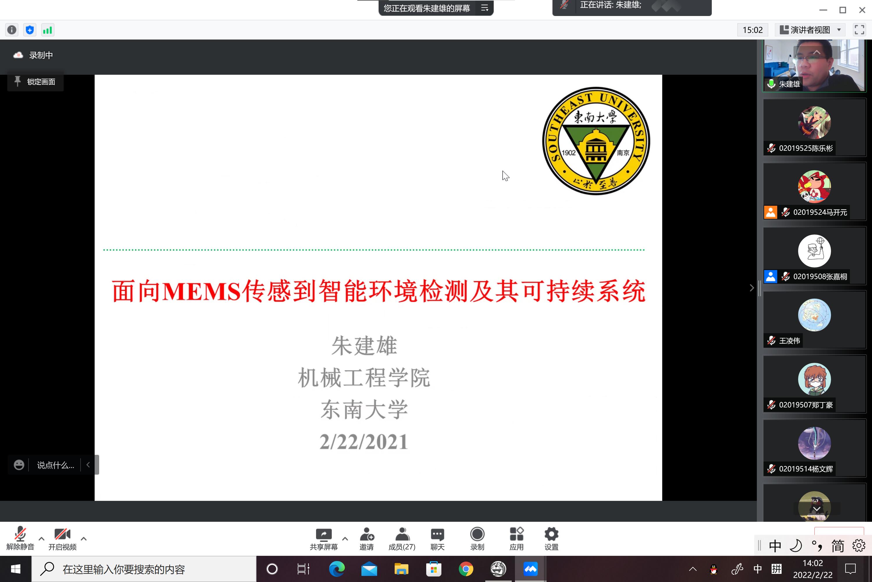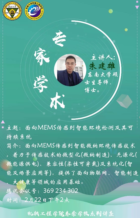 2月22日,九州线上平台硕士生导师朱建雄老师为机械工程学院全体同学带来了一场别开生面的讲座,围绕面向MEMS传感到智能环境检测及其可持续系统这一主题,朱建雄老师从MEMS的发展历史与趋势出发,分析了其商业化面临的挑战,并着力于MEMS传感技术微型化、无源化、兼容性以及系统化这四个方面为我们详细介绍了MEMS传感的原理与应用。朱建雄老师列举从智慧城市到智能家居再到数字阮生、人体健康检测等领域的大量例子为同学们深动形象的展示了面向MEMS传感到智能环境检测及其可持续系统在面向物联网、智能制造以及大健康等领域的广泛应用。同时朱建雄老师也讲座过程中对于各种检测的机理深入浅出的为同学们做了介绍。最后朱建雄老师给同学们展示了自己在面向MEMS传感到智能环境检测及其可持续系统方面的一些研究成果,并与同学们做出了一些交流探讨,通过这场讲座,同学们对MEMS有了一定的了解,也明白了该项技术良好的前景。