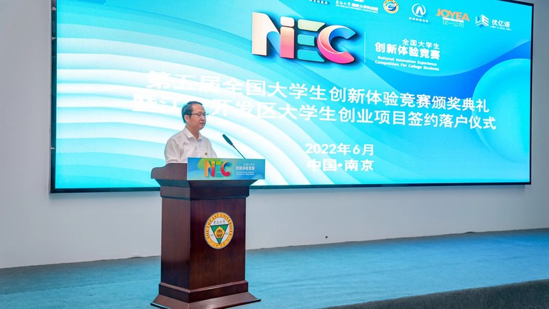 2022年6月6日,在东南大学120周年华诞之际,第五届全国大学生创新体验竞赛颁奖典礼暨江宁开发区大学生创业项目签约落户仪式在东南大学国家大学科技园江宁园区创新中心楼一楼路演厅举行。本次竞赛由中国创造学会主办,东南大学和安徽工业大学联合承办,东南大学国家大学科技园、安徽工业大学创新教育学院、九州线上平台组织实施。