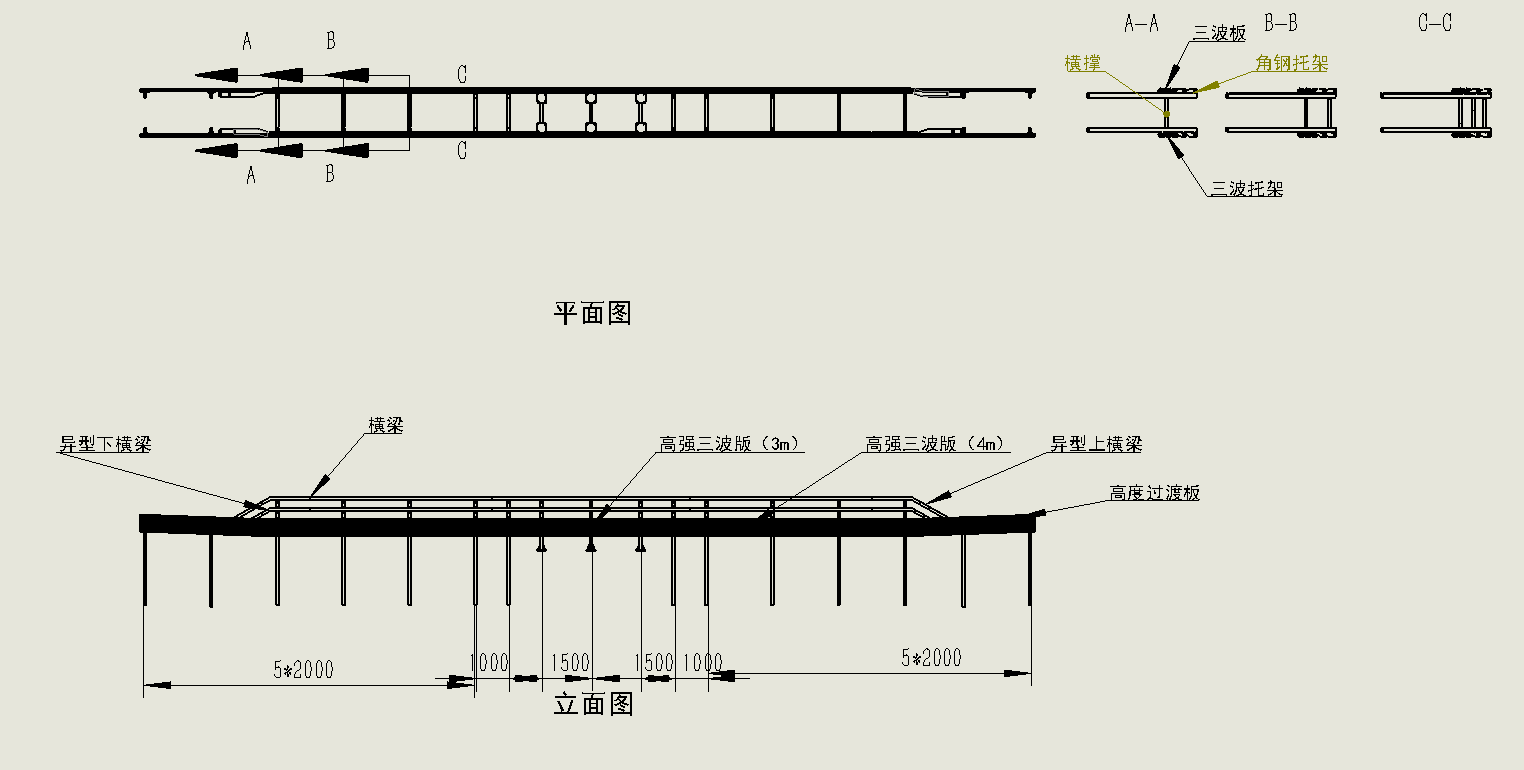 本项目立足于高强小变形护栏行业发展,通过三个方面:护栏行业国内外相关评价标准、护栏行业的现状及发展前景、相关产品的创新优化结构,展开项目调研。对SB级小变形高强护栏的零件图纸,采用三维建模软件进行建模分析。对护栏产品深入了解,不断探索与思考护栏优化方案、创新优势,最终研发出SB级小变形护栏的优势产品。