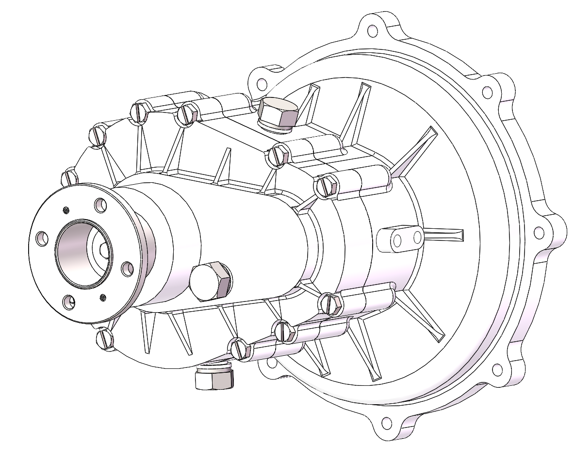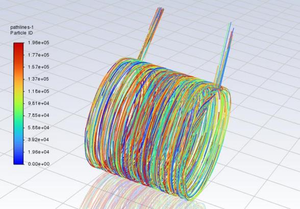 水冷电机是通过向壳体内部水道注入冷却水来对电机进行散热的一种电机,一般以电机机座水冷为主,部分机型的端盖也可设计成水冷结构。水冷机座有一个进水口及出水口,壳体内部有多条水道,这样可以充分发挥水冷的优势,带走更多电机所产生热量。由于客户对于水道水阻数据的需求,并且整体电机的散热所需考虑因素太过繁多,无法进行,因此此次项目我们是对水道的水阻进行ansys的仿真分析。