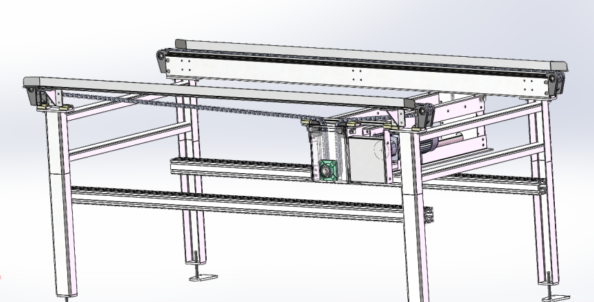 四向物流小车模型的建立。完成了小车中驱动轮系、货叉同步带结构、货叉叉板、货叉拉钩和小车框架的模型建立。