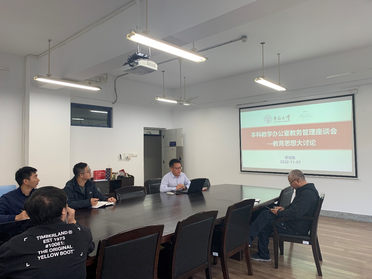 为提升学院教务管理水平和教学管理质量,2022年11月7日下午,机械工程学院本科教学办公室在机械楼第一会议室召开了教育思想大讨论暨教务管理座谈会,学院教学办公室全体成员参加,会议由毕可东副院长主持。